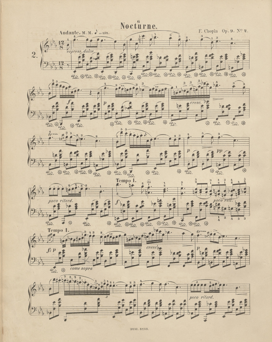Figure 1: Sheet music for Nocturne, Op. 9 No. 2, F. Chopin. Published by Leipzig: Fr. Kistner (1880).